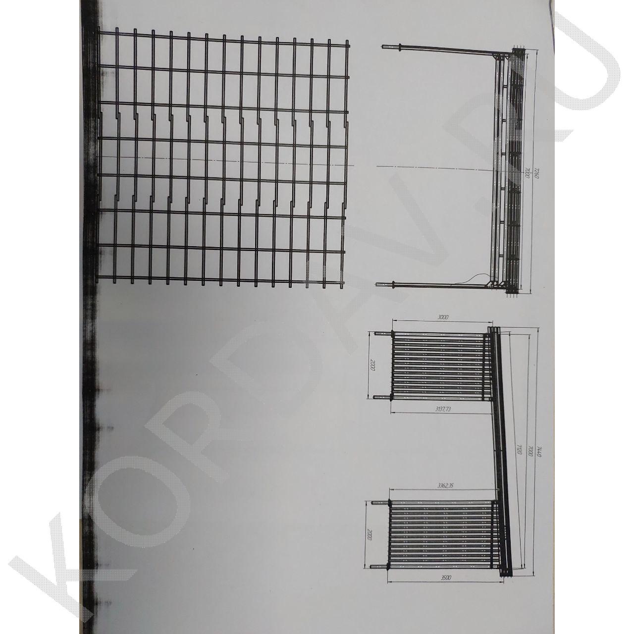 По бокам устанавливается решётка из профиля 60х40 мм, габаритами 1800х2970х100 мм.