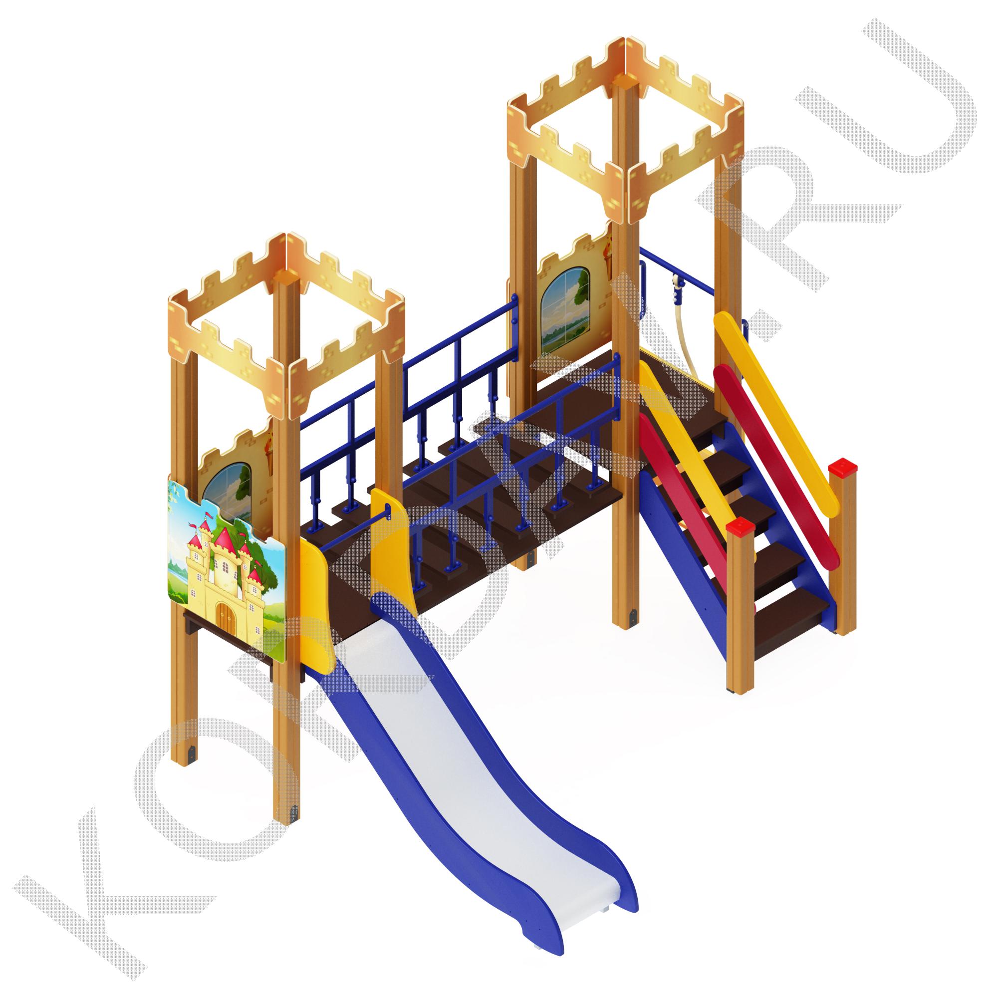 - Цветовая гамма: синий (дерево), красный (металл)