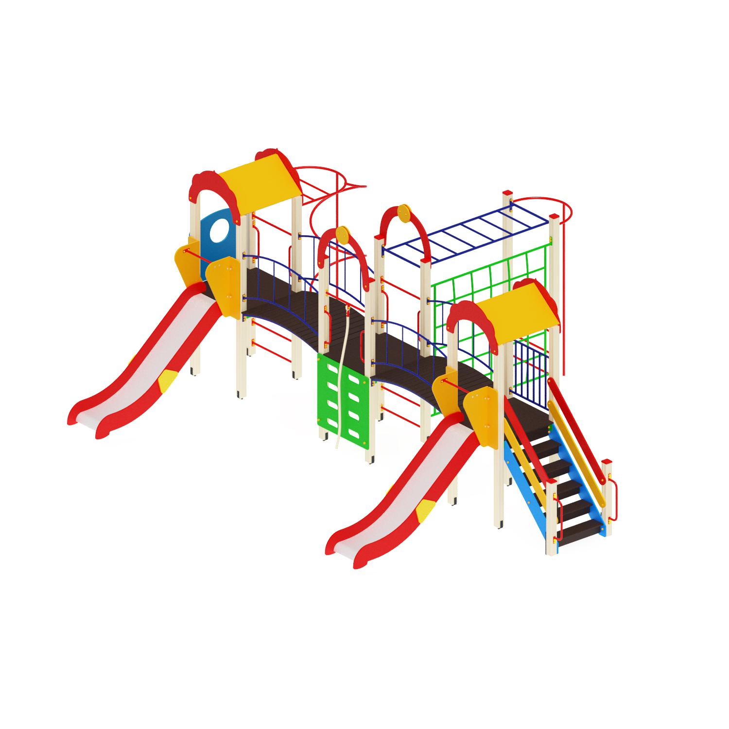 - Конструкция: три башни, каждая из четырех клееных брусьев 100х100 мм, высота 2500 мм.