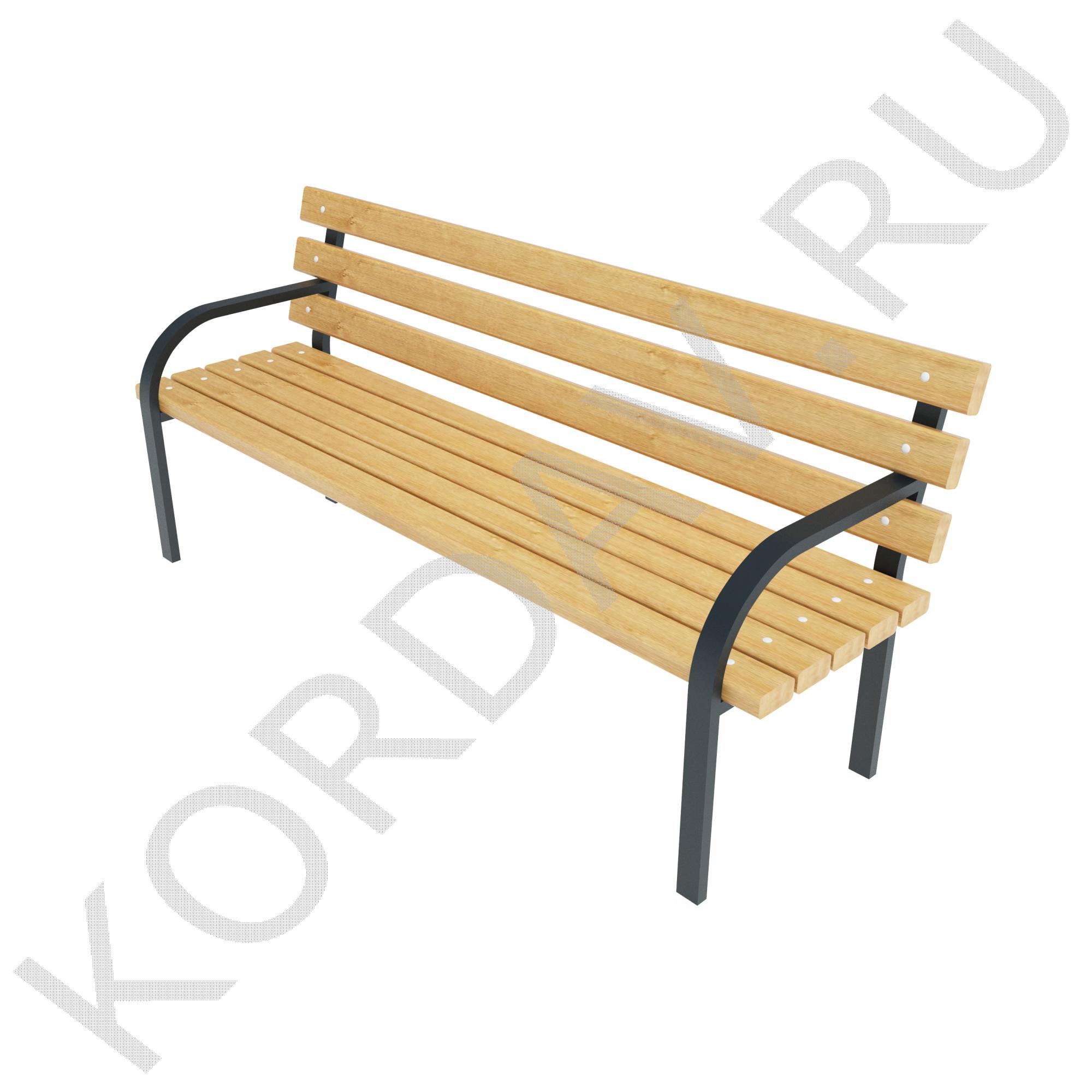 Таким образом, данная парковая скамья отличается прочной металлической конструкцией с плавными изгибами и качественной обработкой поверхностей, а также удобным деревянным сидением и спинкой, защищенными от атмосферных воздействий специальными красками.